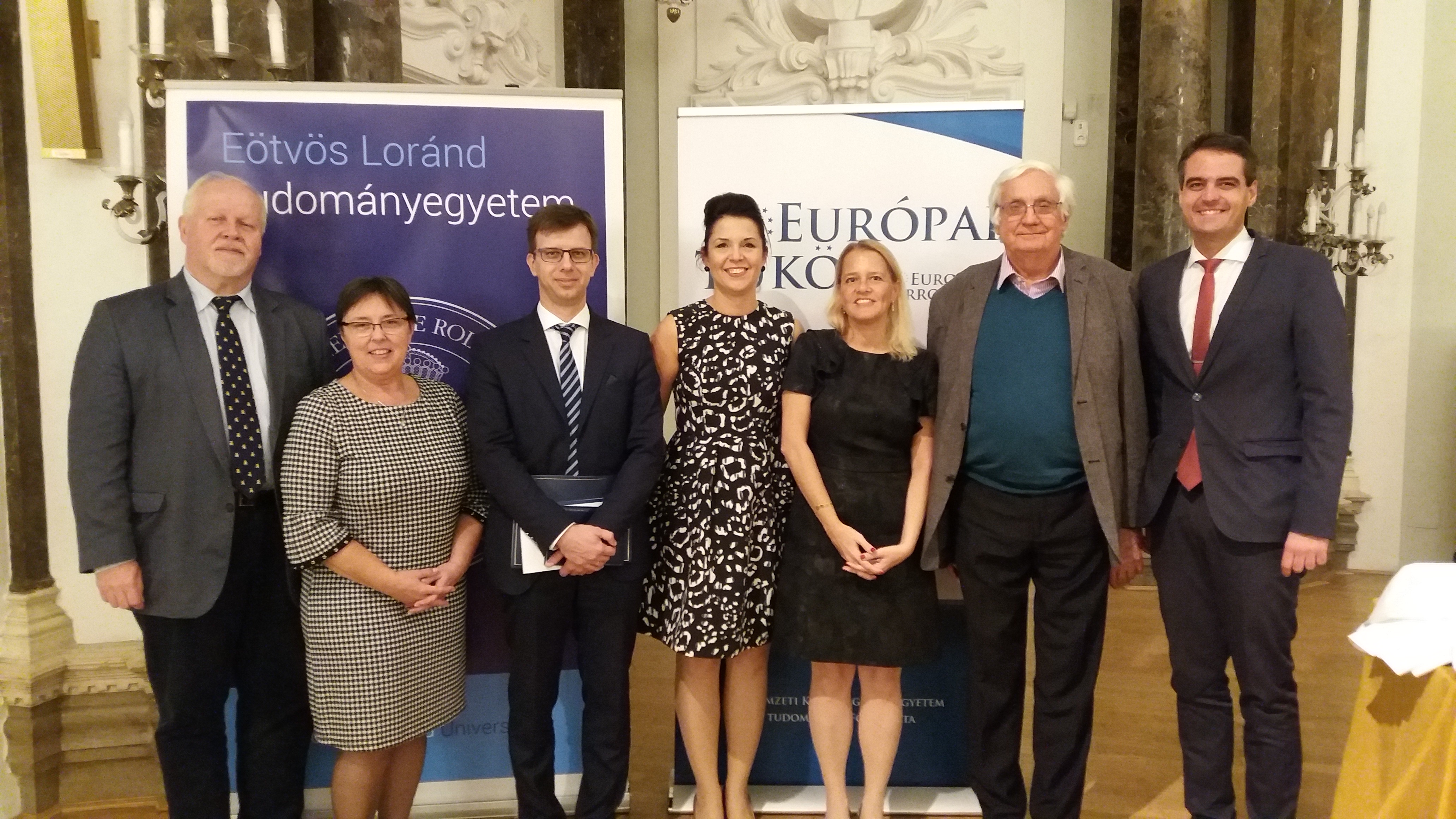 Dr. Várnay Ernő professzor „Gondolatok az Európai jog oktatásáról és kutatásáról” című előadásában bemutatta az elmúlt évtizedek szakmai kutatásainak legfontosabb állomásait, majd azt a sokszor bonyolult és kihívásos folyamatot, amely során az egyetemi oktatók és tanszékek befogadhatóvá és élményszerűvé teszik a hallgatók számára a tudásanyagot.