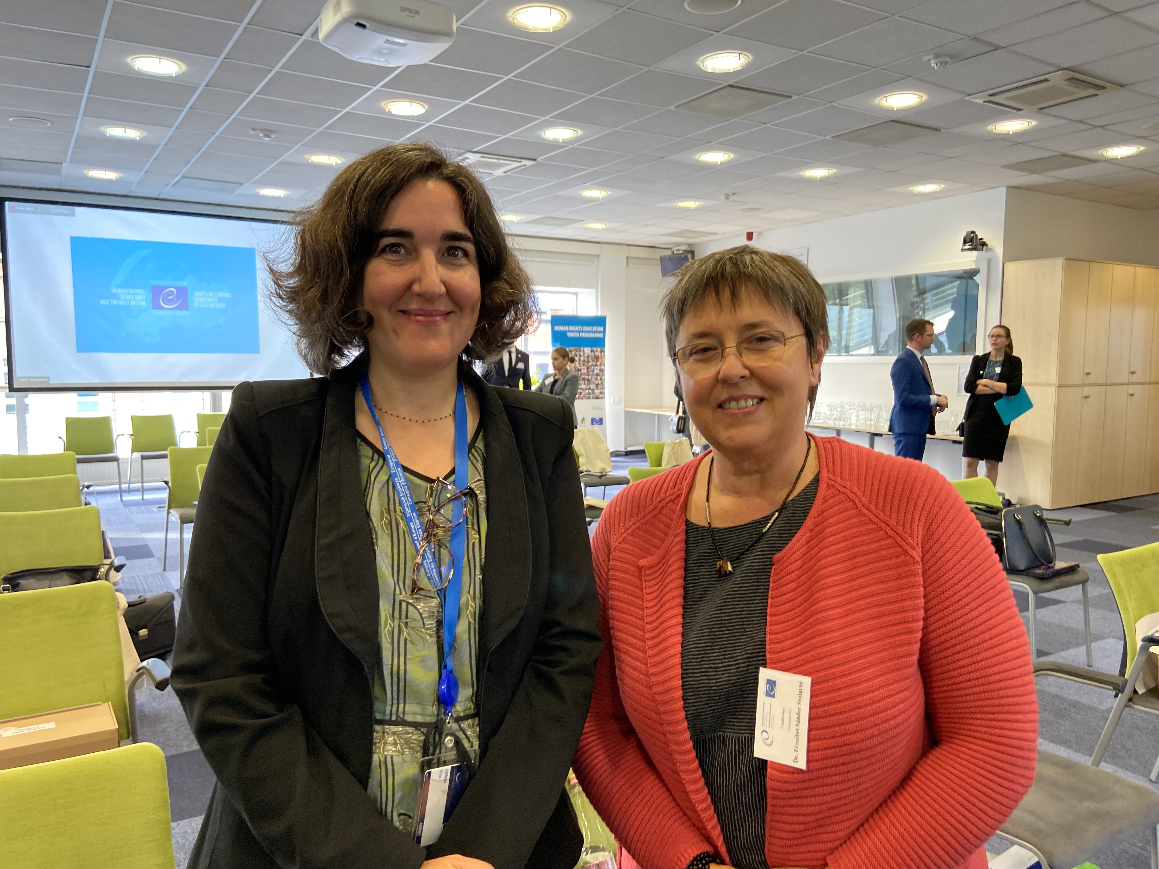 A konferencián alkalom nyílt arra, hogy Szalayné Sándor Erzsébet rövid szakmai eszmecserét folytasson az Európa Tanács kisebbségi monitoring bizottságainak szakmai titkársága vezetőjével, Elise Cornu asszonnyal.