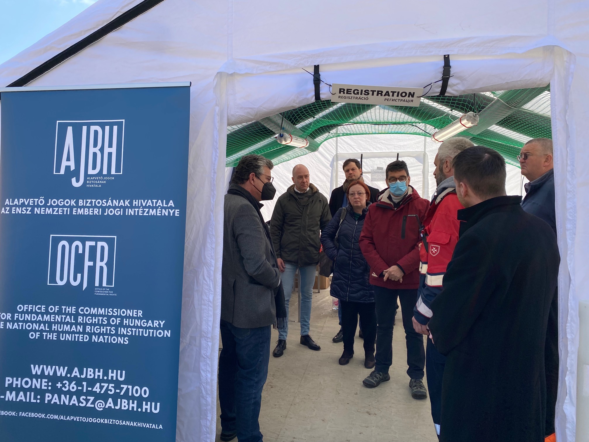 A beregsurányi gyűjtőponton, dr. Kozma Ákos ombudsman megnyitotta az AJBH újabb ideiglenes területi irodáját 2022. március 17-én.