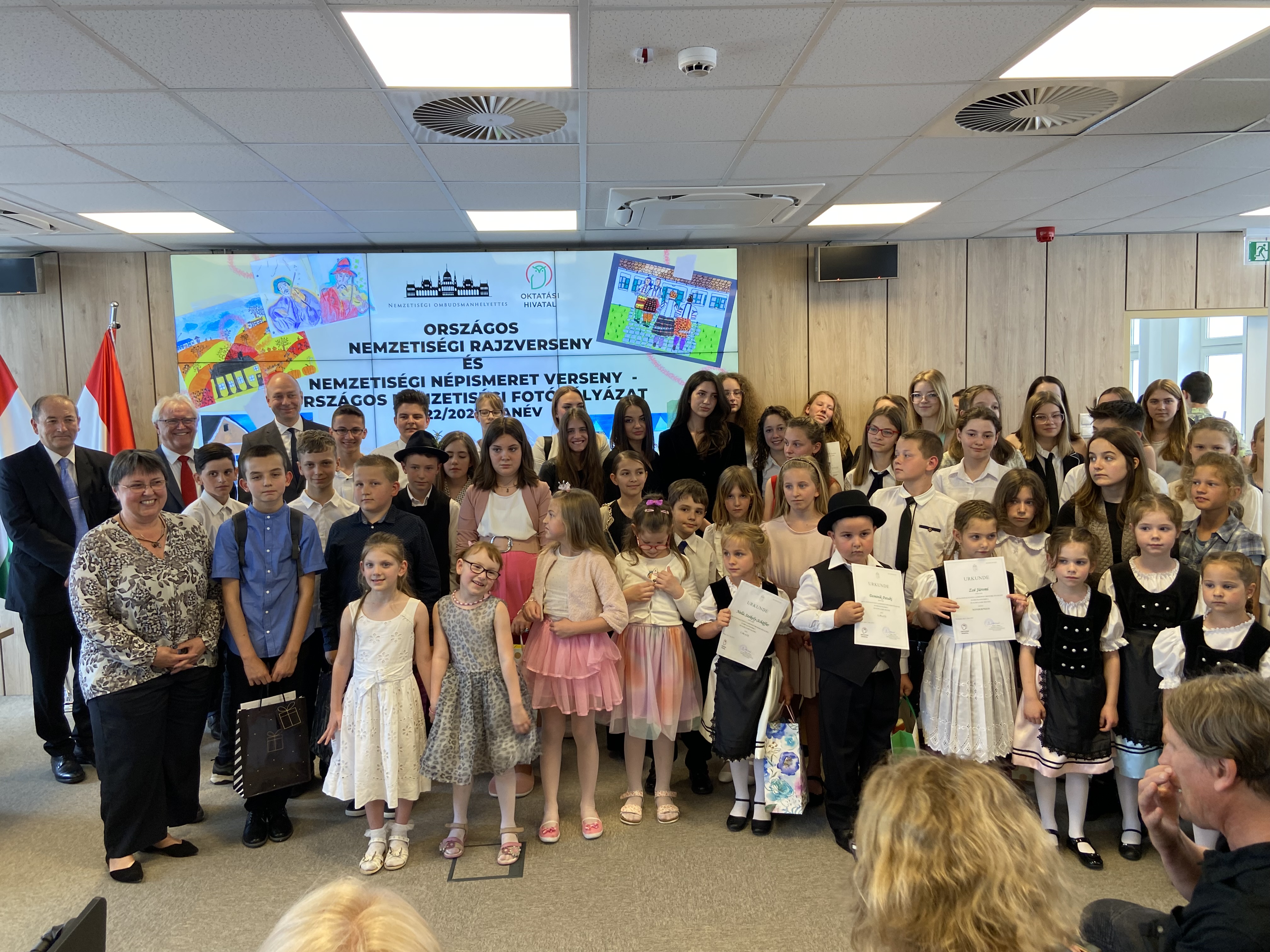 Az ünnepségen köszöntőt mondott Kozma Ákos, az Alapvető Jogok Biztosa, Ritter Imre, német nemzetiségi országgyűlési képviselő és Brassói Sándor, az Oktatási Hivatal elnöke, majd ünnepi beszéd keretében osztotta meg gondolatait a gyerekekkel és fiatalokkal Szalayné Sándor Erzsébet, Nemzetiségi Ombudsmanhelyettes. A rendezvényt megtisztelte jelenlétével Giricz Vera, ruszin nemzetiségi szószóló; Grexa Liliána, ukrán nemzetiségi szószóló; Rónayné Slaba Ewa Maria, lengyel nemzetiségi szószóló; Szolga József, horvát nemzetiségi szószóló; Hristodoulou Konstantinos, a Magyarországi Görögök Országos Önkormányzatának elnöke; Kramarenkó Viktor, az Országos Ruszin Önkormányzat elnöke és Gallai Gregor a német nemzetiségi képviselő kabinetfőnöke, valamint Merklné Kálvin Mária az Oktatási Hivatal főosztályvezetője.