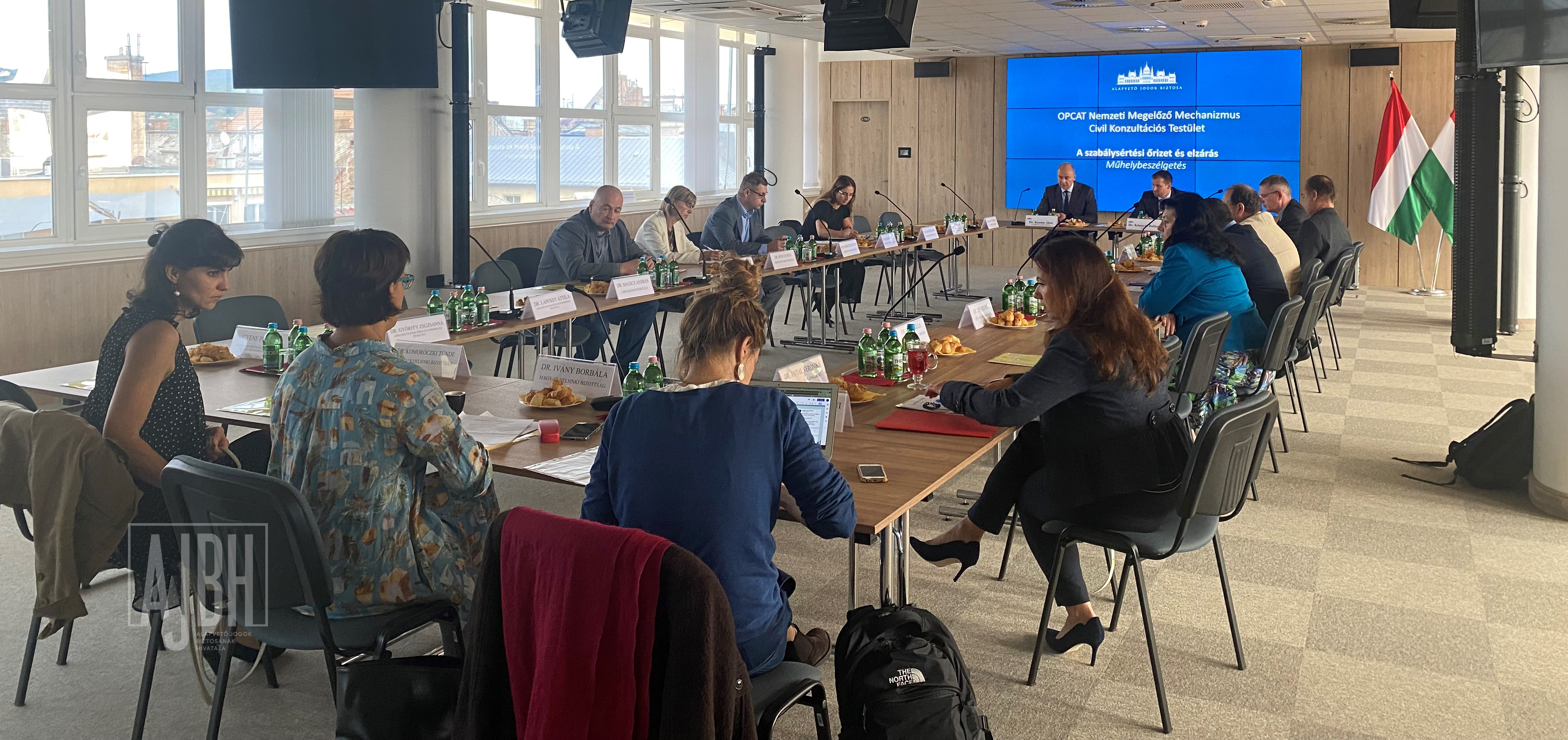 Az ülést követően „A szabálysértési őrizet és elzárás jogszabályi hátterével és gyakorlatával kapcsolatos problémák megvitatása” címmel szakmai műhelybeszélgetésre került sor.