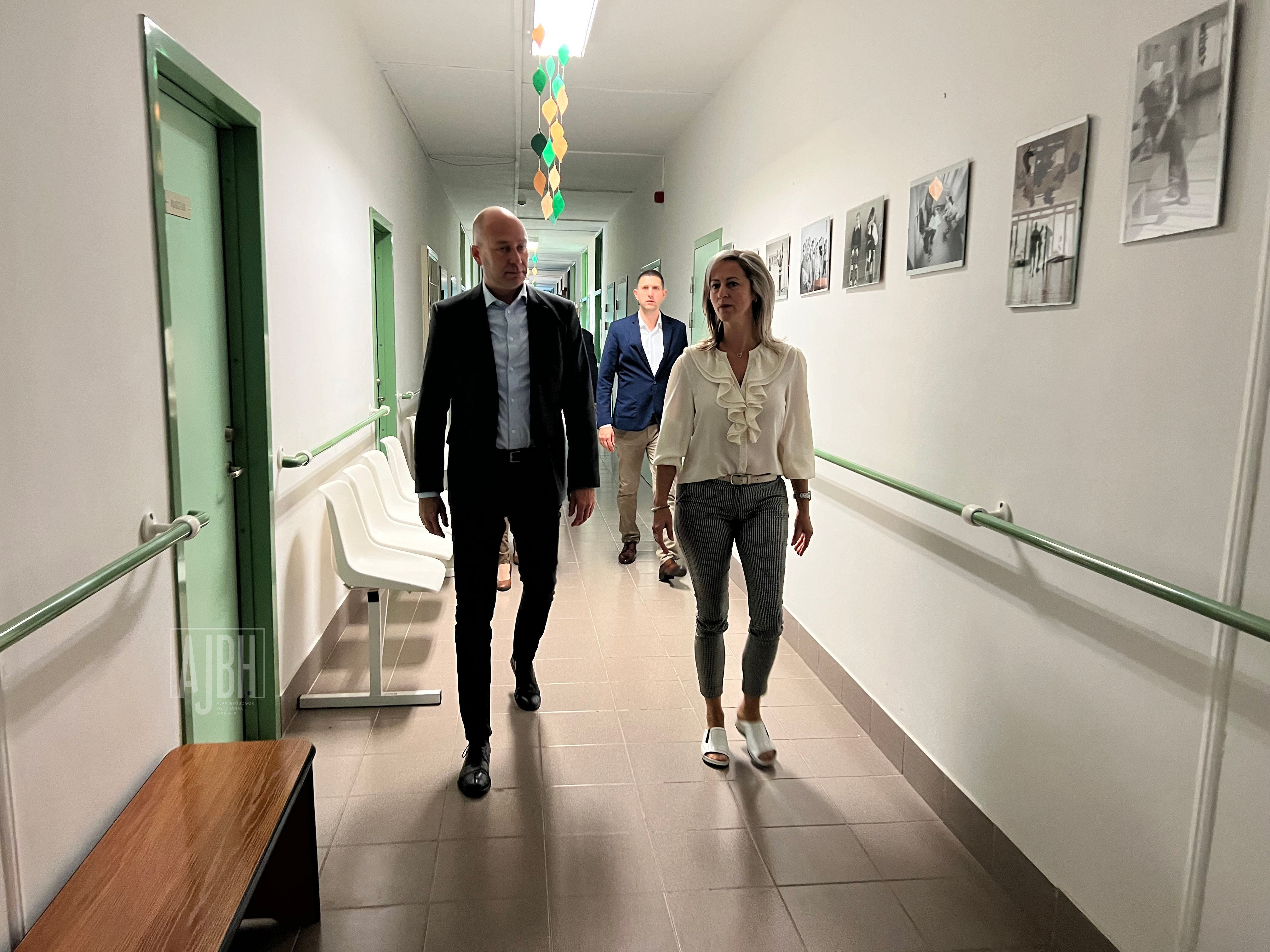 Az intézményben Sinka Zsolt, a Szociális és Gyermekvédelmi Főigazgatóság Heves Vármegyei Kirendeltségének igazgatója és Tatai Edina intézményvezető vezette körbe az ombudsmant.