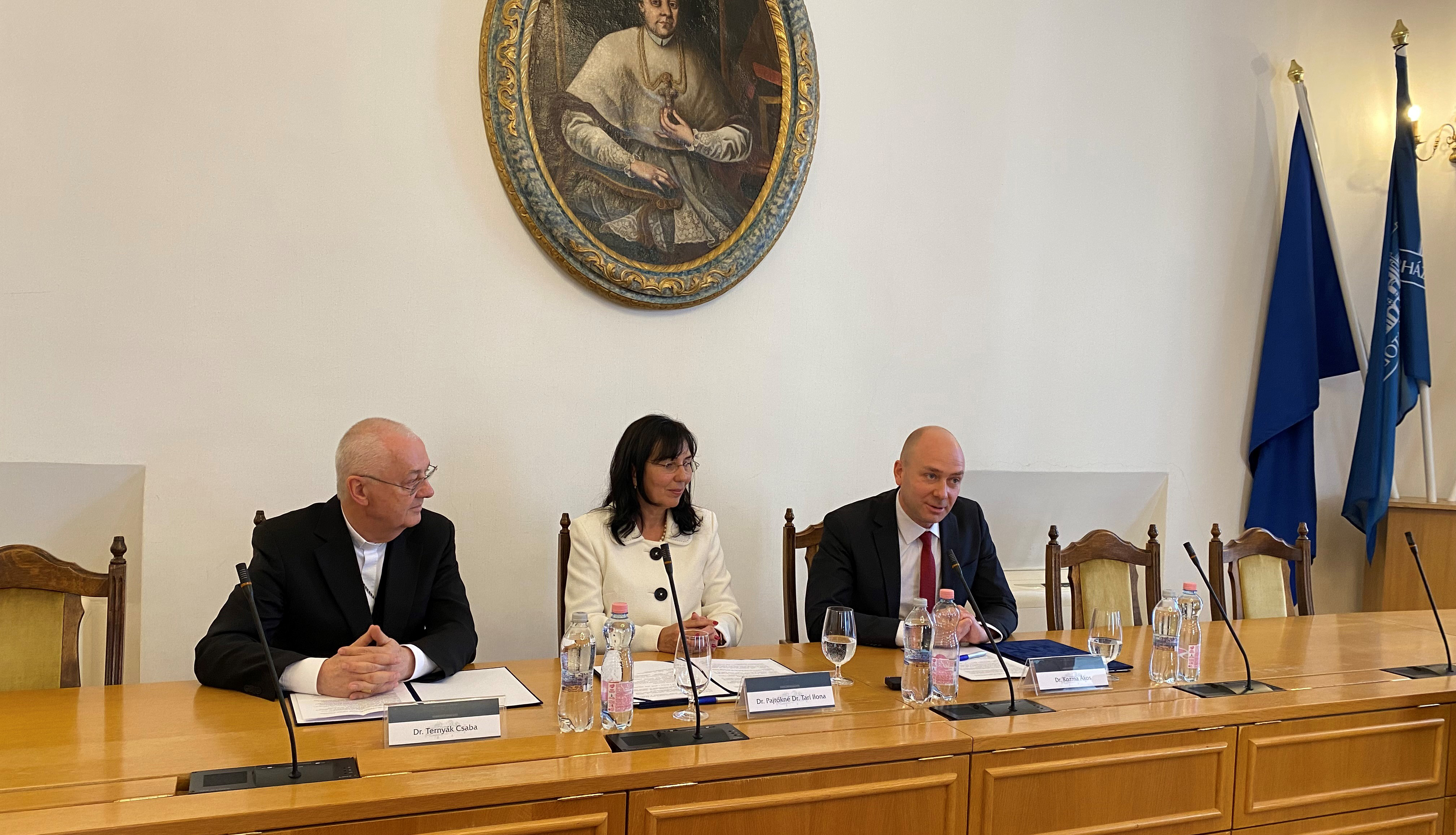 Az Alapvető Jogok Biztosának Hivatala és az Eszterházy Károly Katolikus Egyetem együttműködési megállapodásának ünnepélyes aláírásán dr. Ternyák Csaba nagykancellár, egri érsek, dr. Pajtókné dr. Tari Ilona rektor, valamint dr. Kozma Ákos, az alapvető jogok biztosa mondott köszöntőt.