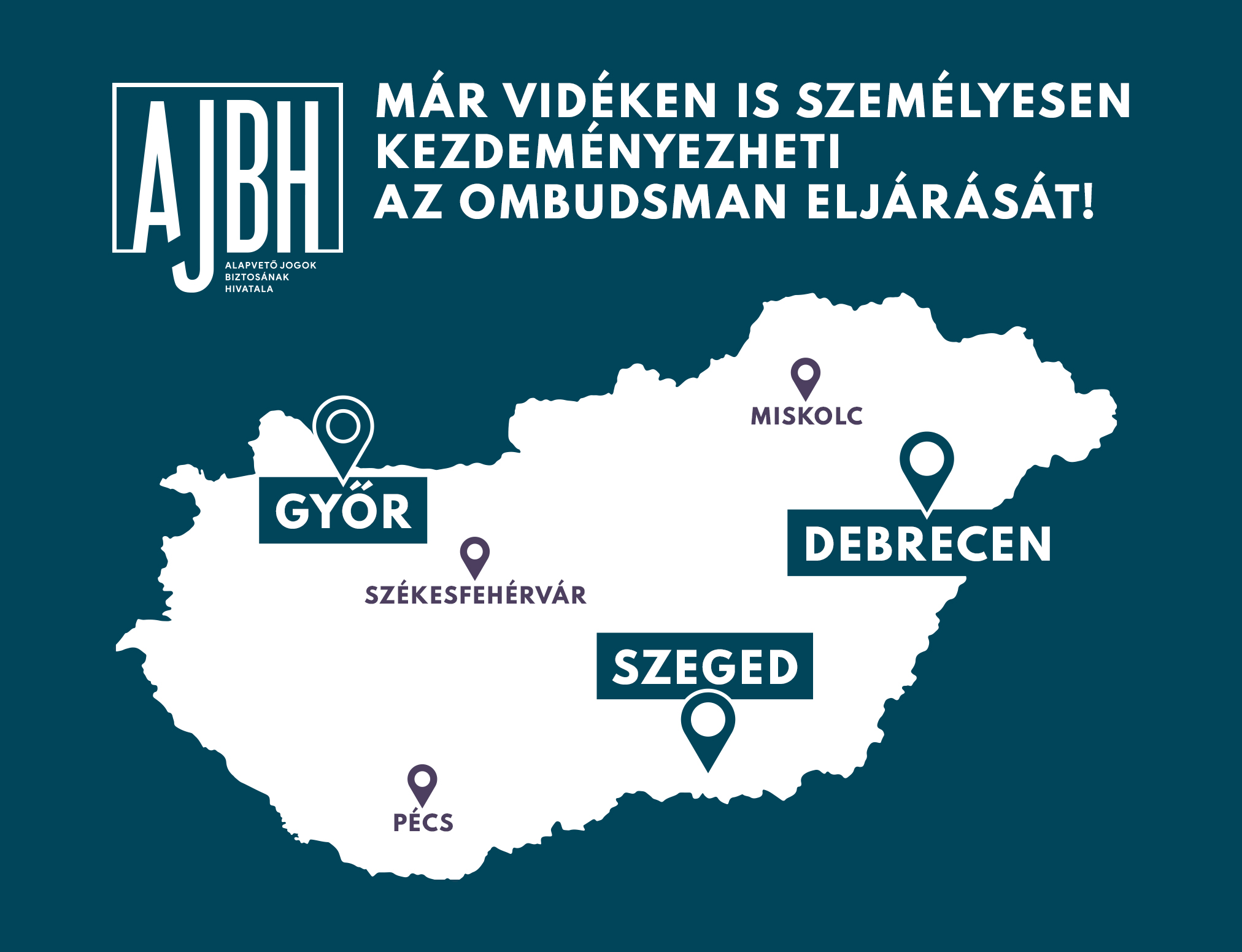 Az Alapvető Jogok Biztosának Hivatala 2022. február 1-jétől területi irodát nyit Szegeden, Debrecenben és Győrben, így Budapest mellett immár három vidéki nagyvárosban, a közeljövőben pedig Székesfehérváron, Miskolcon és Pécsen is kezdeményezhetik majd személyesen az ombudsman eljárását.