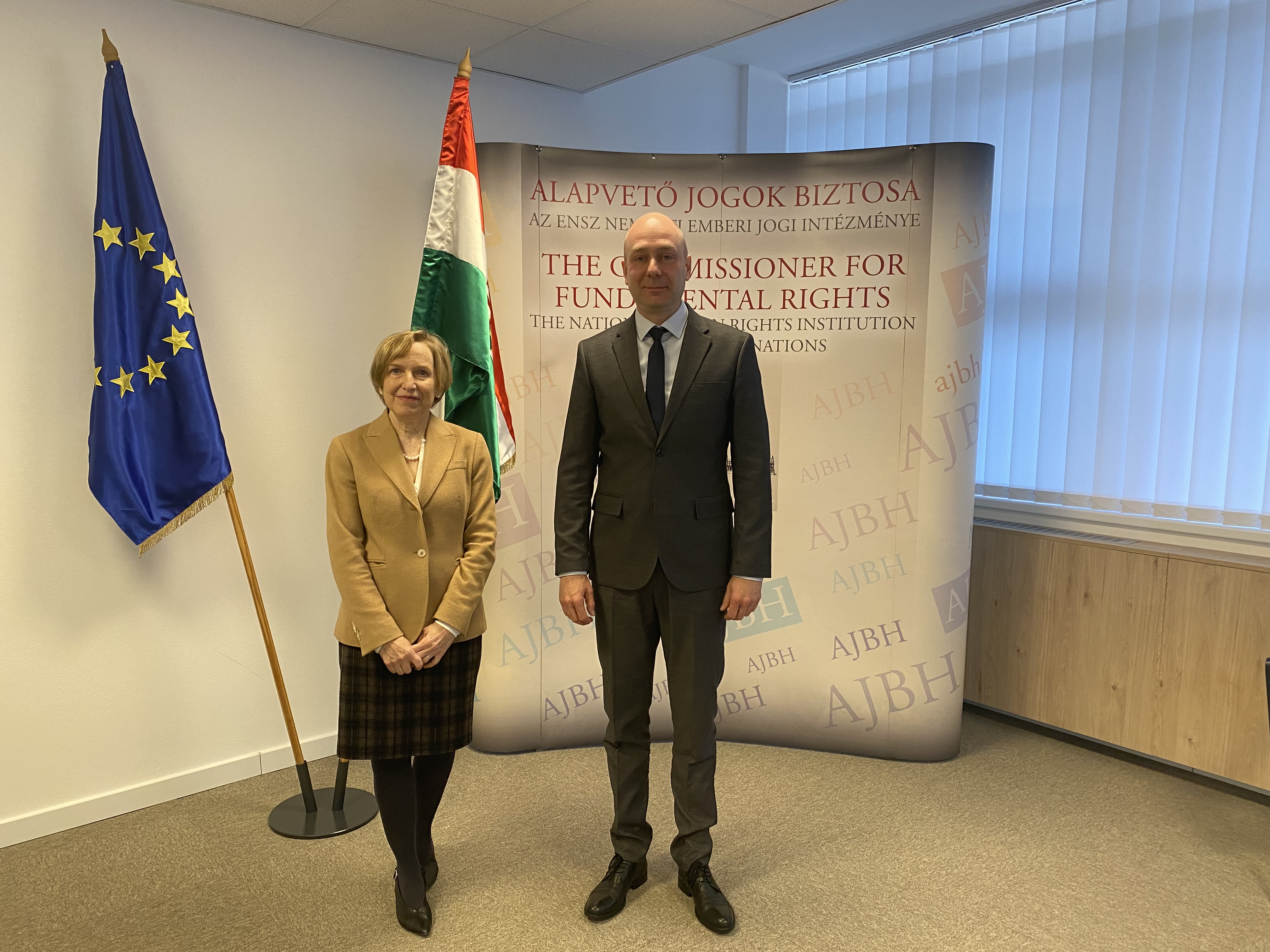 Hivatalában fogadta Jillian Stirk nagykövet asszonyt, az Európai Biztonsági és Együttműködési Szervezet (EBESZ) Demokratikus Intézmények és Emberi Jogok Hivatala (ODIHR) magyarországi Választási Megfigyelési Missziójának vezetőjét dr. Kozma Ákos, az alapvető jogok biztosa 2022. március 16-án.