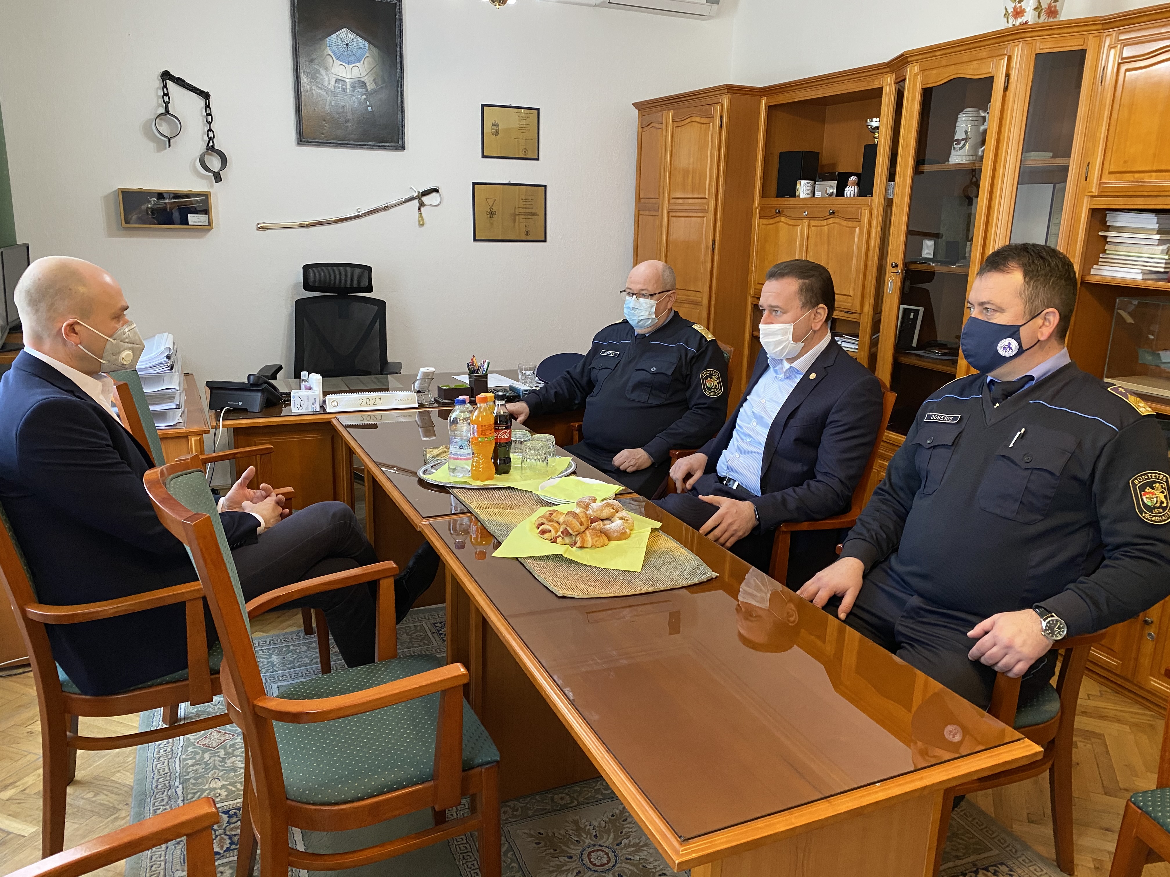 Dr. Kozma Ákost a Közép-dunántúli Országos Büntetés-végrehajtási Intézet Baracska-Annamajor székhelyén dr. Tóth Tamás bv. vezérőrnagy, országos parancsnok, dr. Kiszely Pál bv. dandártábornok, intézet-parancsnok és Laczkó Lóránt bv. ezredes, ügyvezető igazgató fogadta 2021. január 14-én.