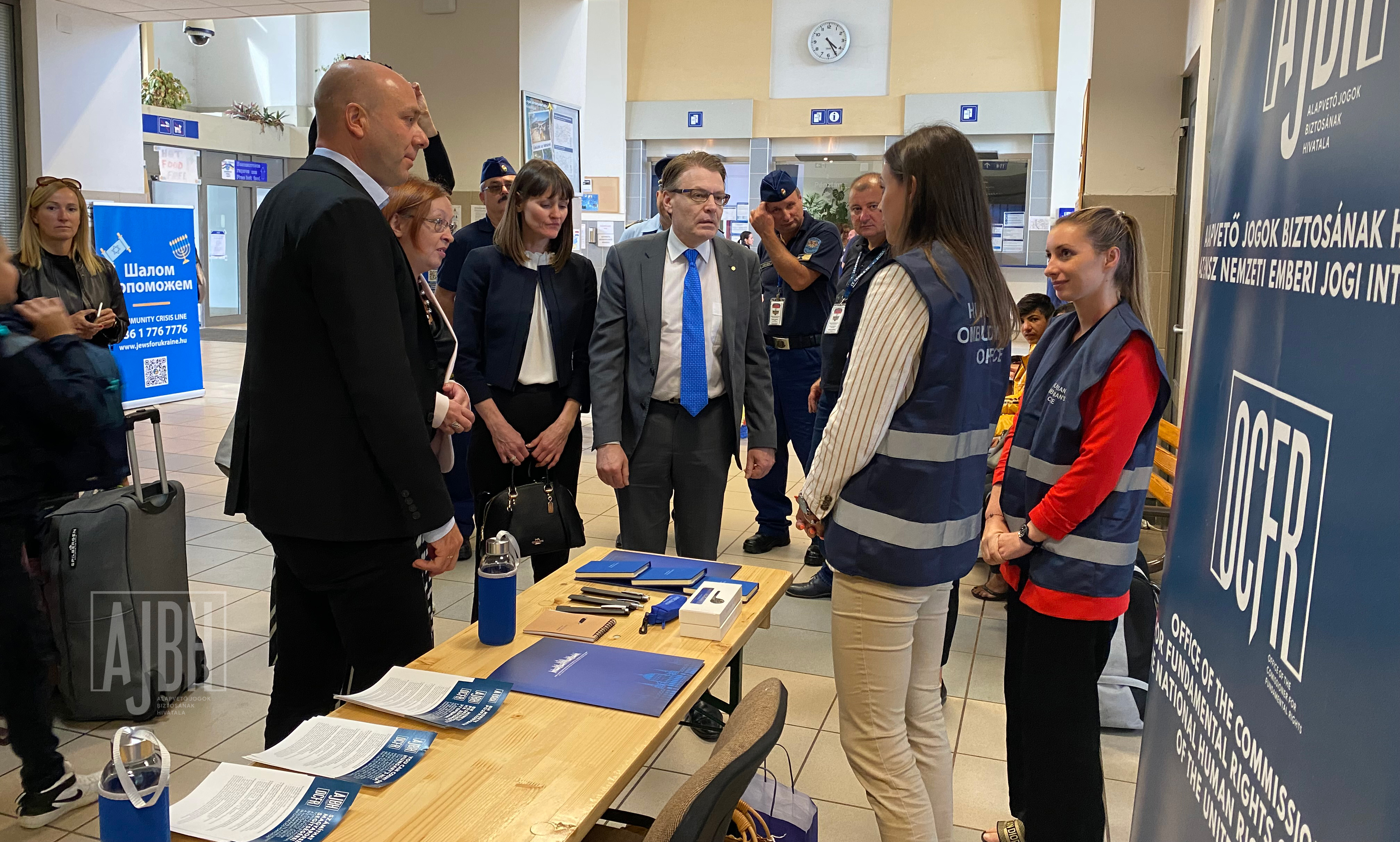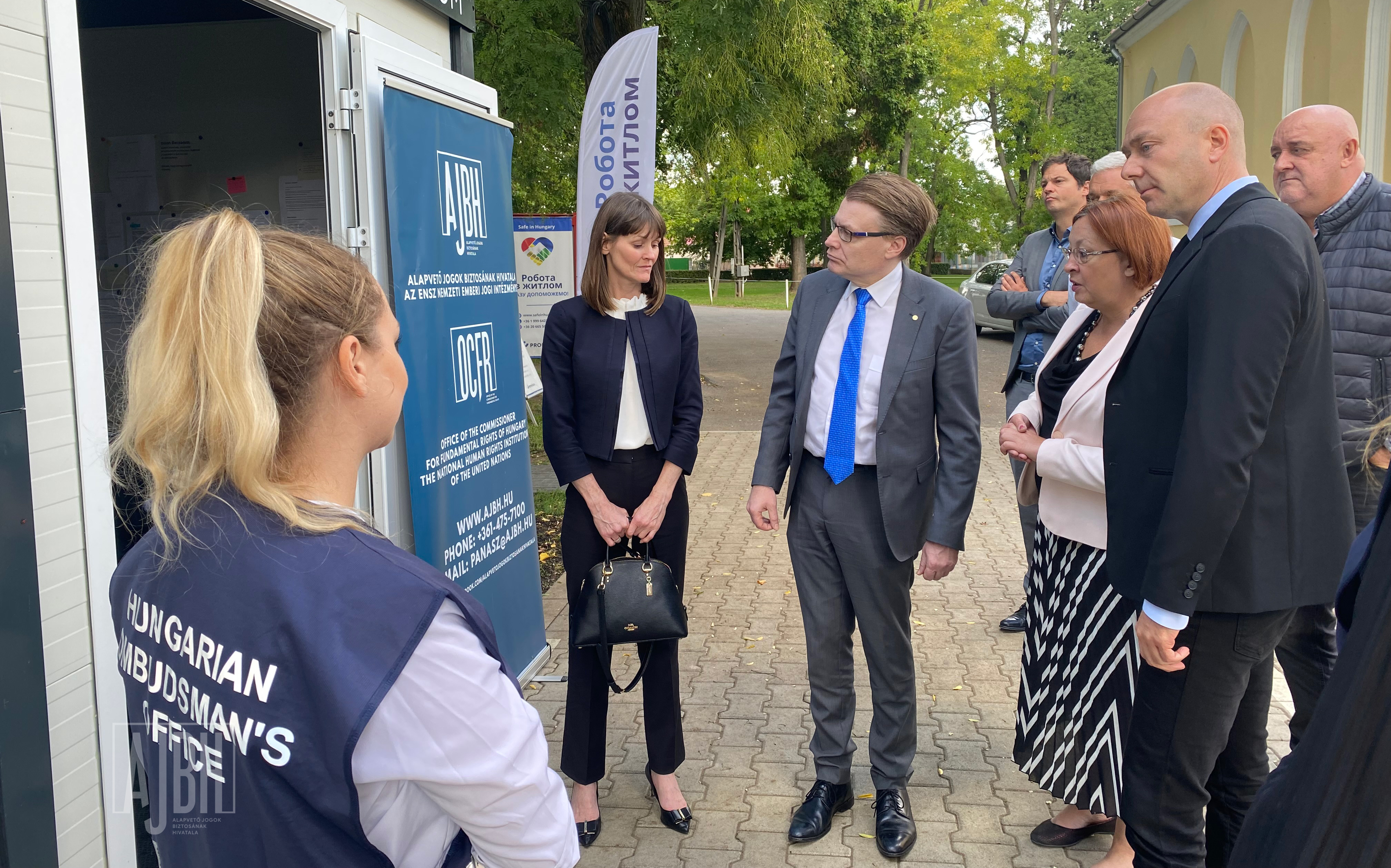 Az Ukrajnából érkező menekültek közvetlen jogi és humanitárius támogatása érdekében létrehozott ombudsmani információs pontokon tett látogatást dr. Kozma Ákos, az alapvető jogok biztosa kíséretében Chris Field, a Nemzetközi Ombudsmani Intézet – International Ombudsman Institute, IOI – elnöke 2022. szeptember 13-án.